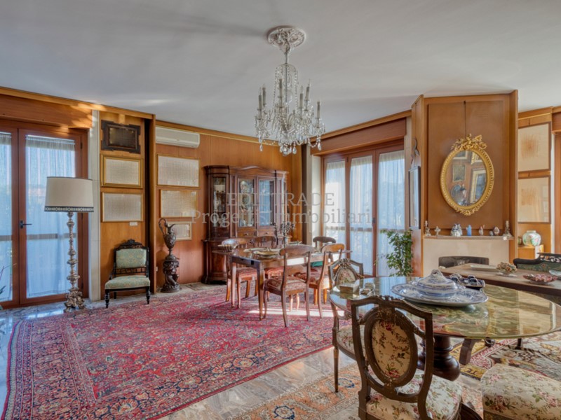 L’accesso diretto dall’ascensore al raffinato ingresso introduce a una zona giorno di grande respiro: un triplo salone luminosissimo con doppio affaccio su balconata, la cucina rinnovata ed abitabile dal design moderno con arredi di ultima generazione e secondo ingresso, un’elegante sala da pranzo indipendente ideale per ricevere con stile. La zona lavanderia e servizio concludono la prima parte della proprietà.