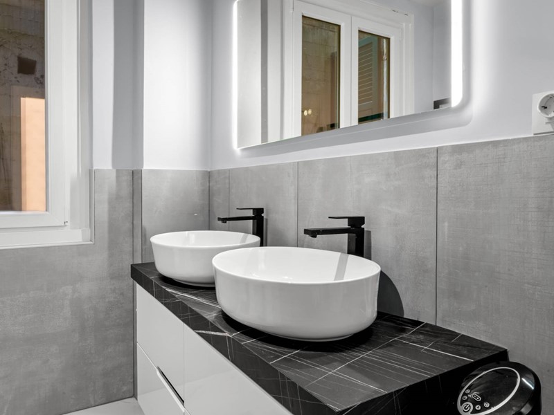 A questo si affiancano un ulteriore soggiorno, una cucina abitabile e una cucina a vista, oltre a uno studio riservato e una funzionale cabina armadio.