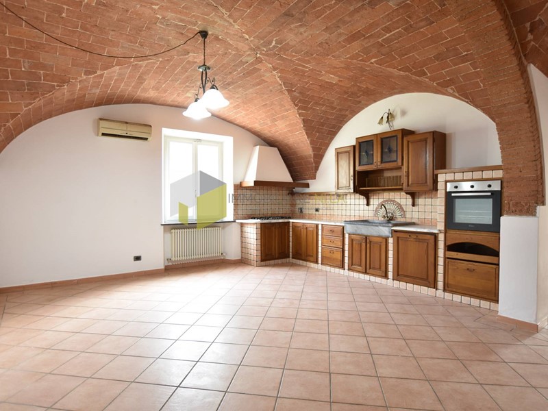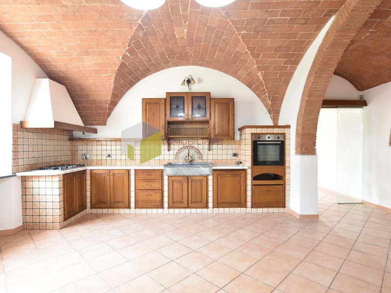 L'ingresso all'abitazione è nel grandissimo soggiorno, dotato di camino che insieme alle volte e gli archi in mattoni faccia vista rendono l'ambiente caldo ed accogliente. Proseguendo troviamo una bellissima e immensa cucina abitabile.