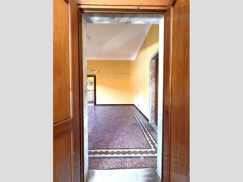 L'ingresso si apre su un ampio corridoio distributivo: sulla sinistra si trovano tre grandi locali versatili, uno dei quali dotato di accesso indipendente dal vano scala condominiale, soluzione ideale anche per studio professionale o spazio ospiti.
