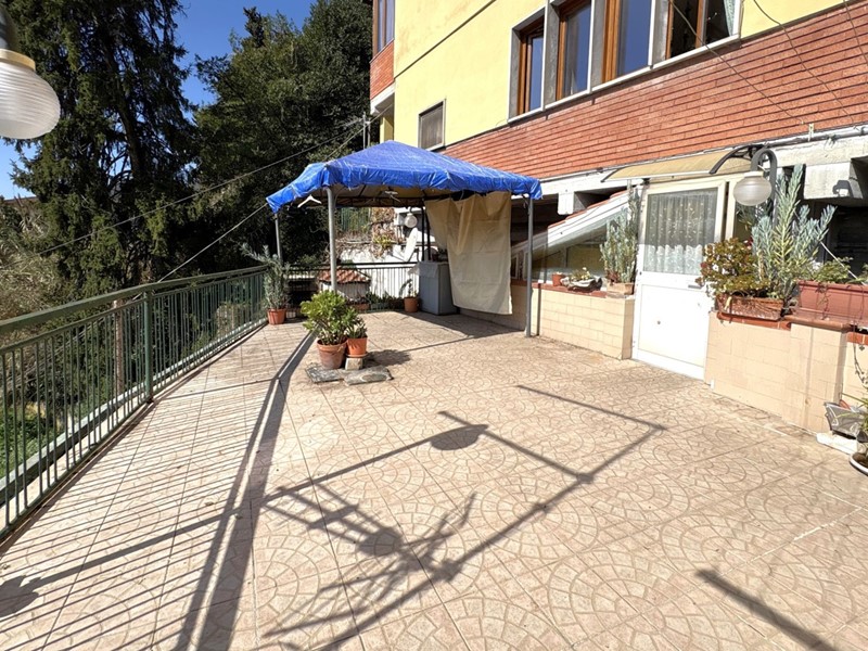 Dal cucinotto, tramite scala interna, si accede al piano superiore dove si apre una splendida e ampia terrazza, perfetta per pranzi all'aperto, serate estive e momenti di relax.