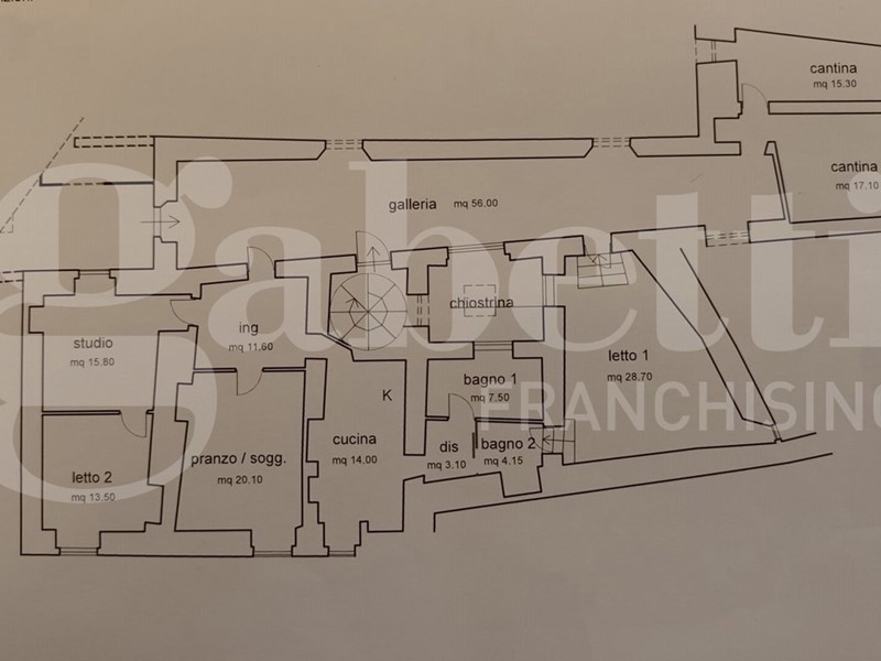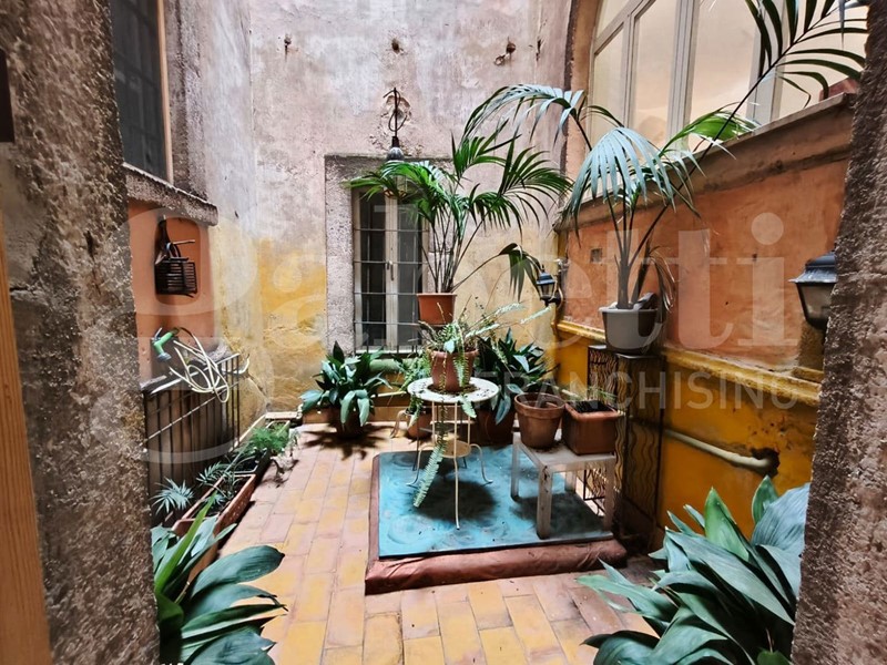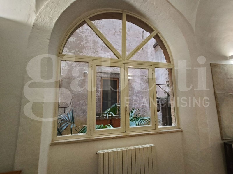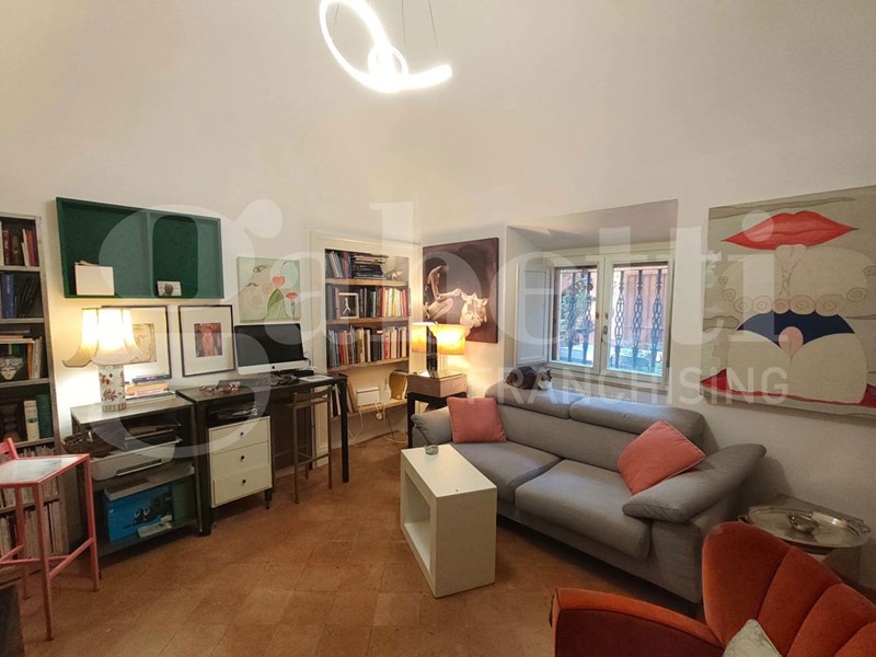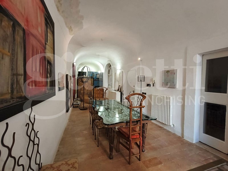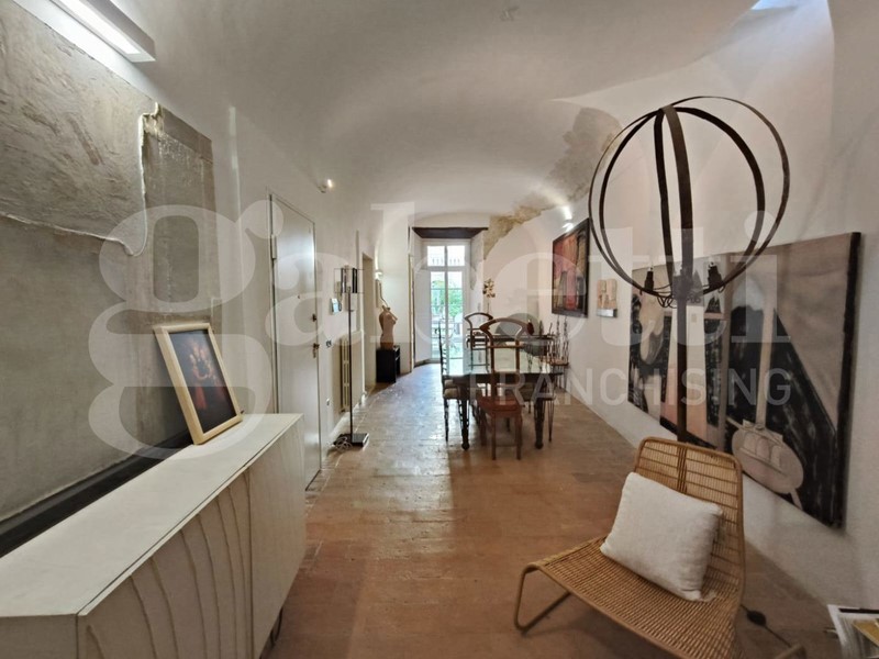 L'appartamento dispone di due ingressi: uno dall'interno del palazzo tramite la suggestiva scala elicoidale, e un accesso indipendente su un chiostro di uso esclusivo. Si accede direttamente a un ampio salone di rappresentanza, perfetto per accogliere ospiti o per momenti di relax.