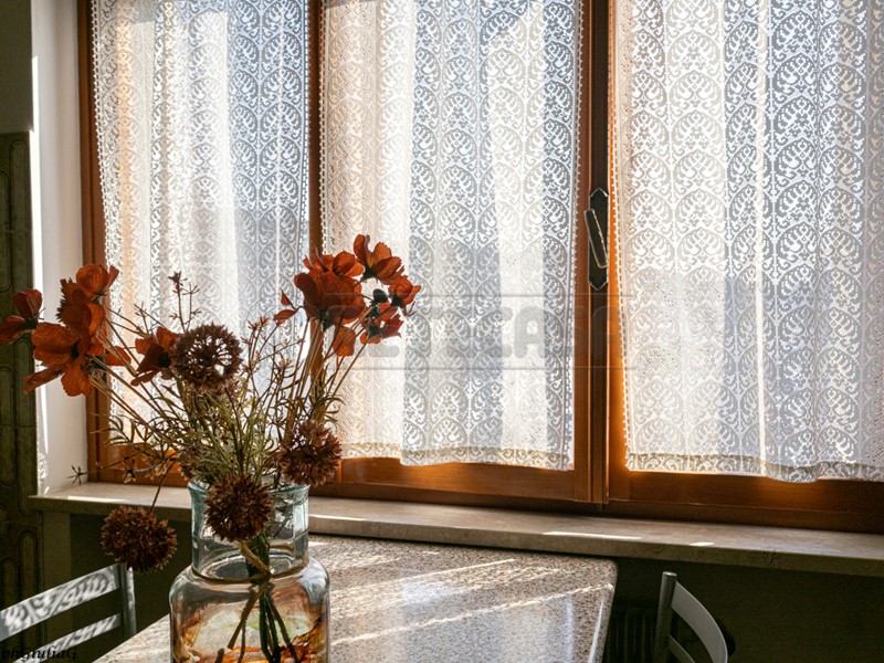 A completare il tutto tre terrazze chiuse da veranda in corrispondenza di ciascuna delle camere da letto e del soggiorno, una spaziosa zona cucina/taverna al piano terra e il garage doppio.