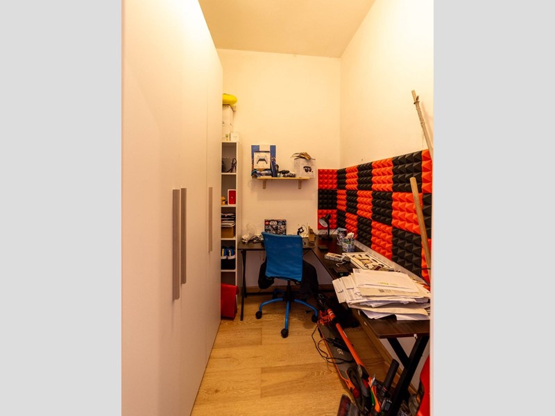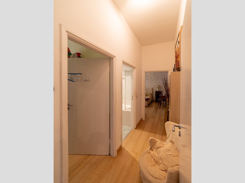Entrando ci accoglie un pratico disimpegno che si sviluppa sul soggiorno con balcone abitabile, un piccolo studio, una grande e rifinitissima cucina, anch'essa con balcone. La zona notte è composta da due grandi camere con bagno, dove l'ampiezza delle stanze permette anche di creare un secondo bagno.