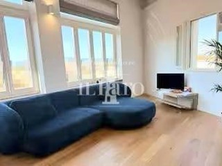 L'immobile è cosi composto: Bellissima e luminosa zona giorno di circa 50 mq con grandi vetrate e soffitti con travi a vista, camera da letto matrimoniale con cabina armadio e un bagno.