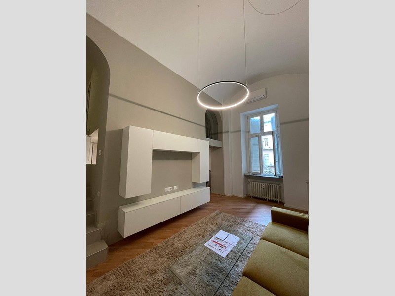 Corso Matteotti in palazzo d'epoca, elegante e delizioso appartamento di charme su due livelli totalmente ristrutturato con grande cura ed arredato tutto nuovo. Inresso su soggiorno, bella cucina abitabile con zona pranzo, 2 camere da letto separate ciascuna con suo bagno, cabina armadi-studiolo e lungo balcone. Luminoso e silenzioso. Su specifica richiesta può essere installata la lavatrice e la televisione. Arredato nuovo.