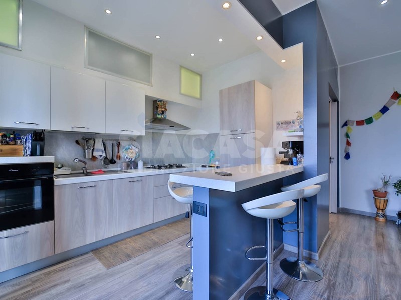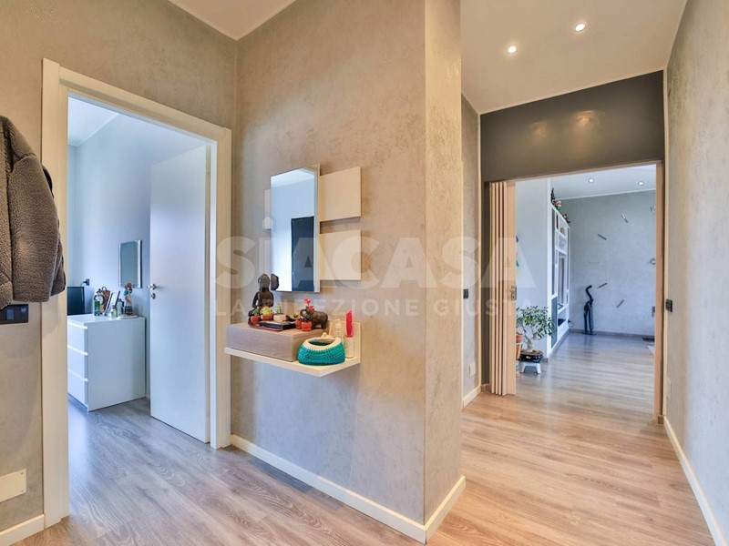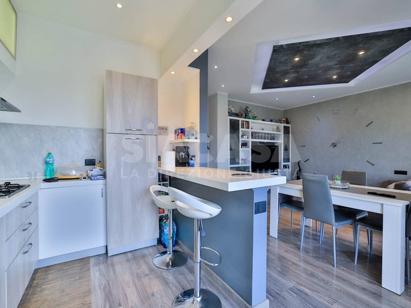 Lingresso introduce alla zona giorno ampia e luminosa, caratterizzata da un ambiente accogliente con cucina a vista, pensato per vivere al meglio i momenti quotidiani e la convivialità. Da qui si accede al balcone che si sviluppa lungo tutto il fronte ovest dellabitazione, dal quale si gode di una piacevole vista panoramica, capace di valorizzare ulteriormente la luminosità e lapertura degli spazi.