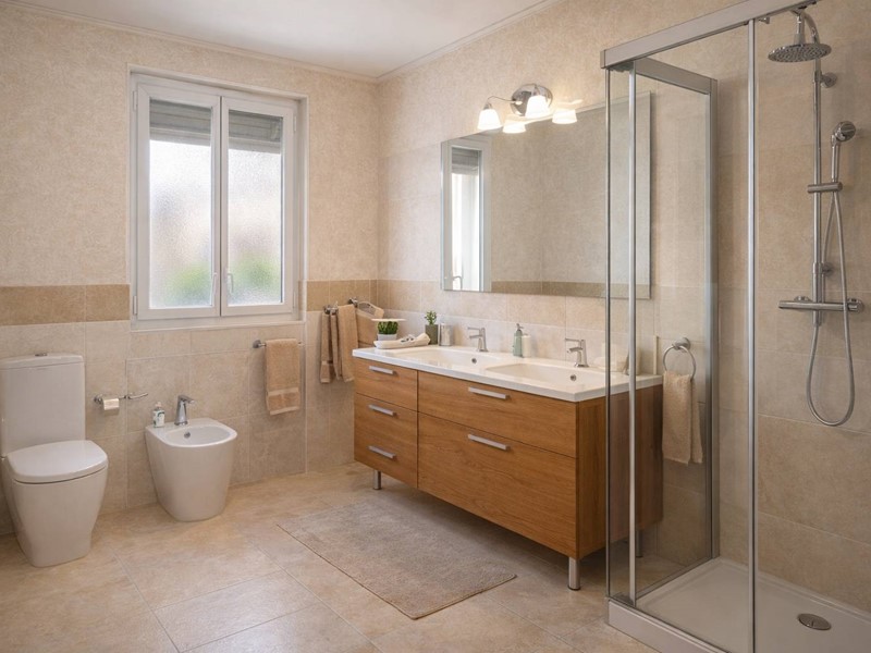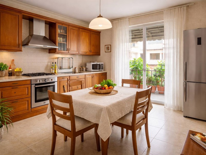 La zona giorno può essere valorizzata con ambienti luminosi e ben organizzati, con spazio sufficiente per creare un soggiorno ampio e accogliente affiancato da una cucina funzionale, capace di diventare il vero cuore operativo della casa.
