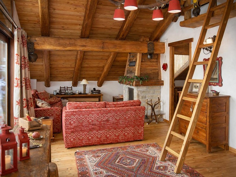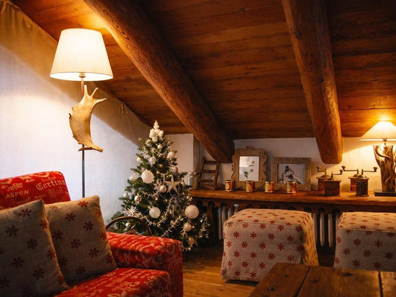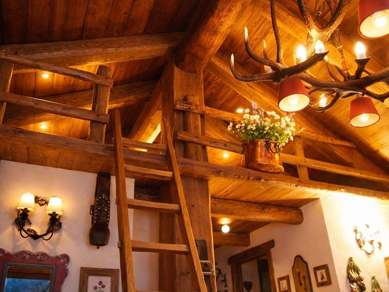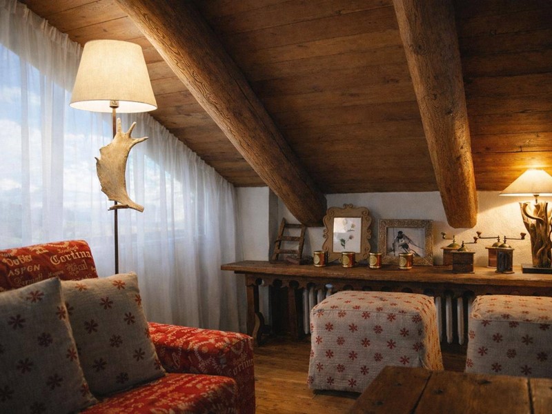Le travi a vista, gli abbaini e larredo tipico montano contribuiscono a creare un ambiente caldo, raffinato e ricco di personalità.