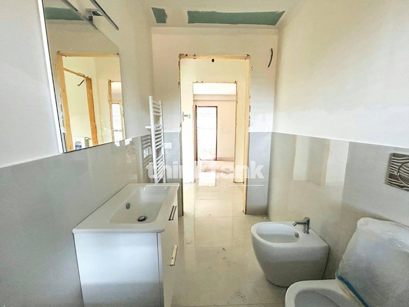 Il bagno presenta finiture contemporanee e materiali di qualità, mentre la lavanderia separata rappresenta un elemento funzionale molto apprezzato nelle abitazioni moderne.