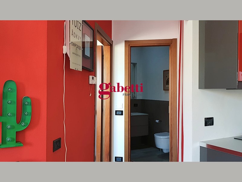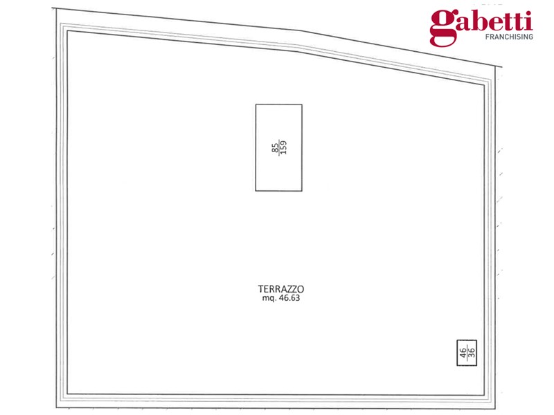 L'appartamento si compone di un'accogliente zona giorno con cucina a vista, disimpegno, camera matrimoniale e bagno con box doccia. Dalla sala si accede direttamente al vero gioiello della casa: un terrazzo privato di ben 46 mq, perfetto per cene all'aperto, momenti di relax o per creare un angolo verde nel cuore della città.