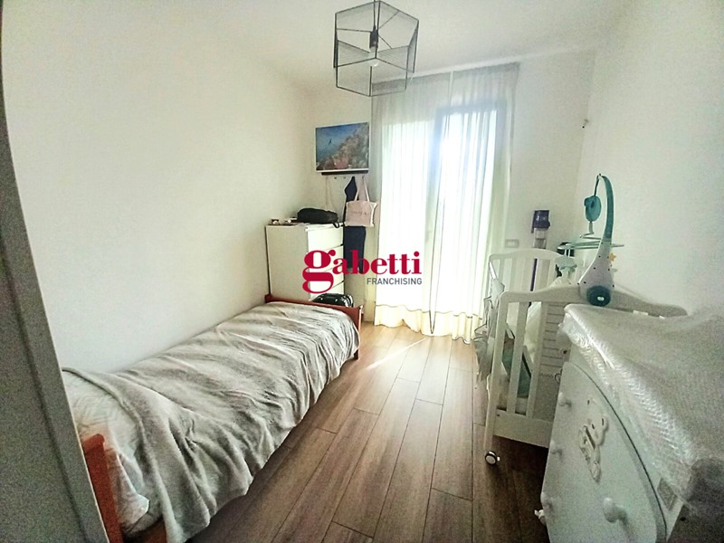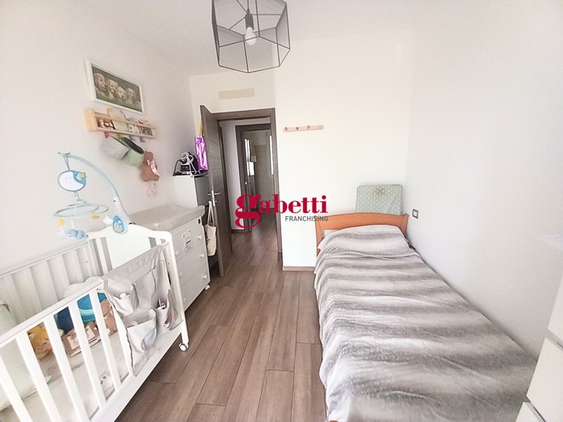 La zona notte è pensata per il relax e la comodità: una camera matrimoniale con accesso diretto al giardino, una camera singola versatile e un bagno finestrato moderno e con box doccia extra-large.