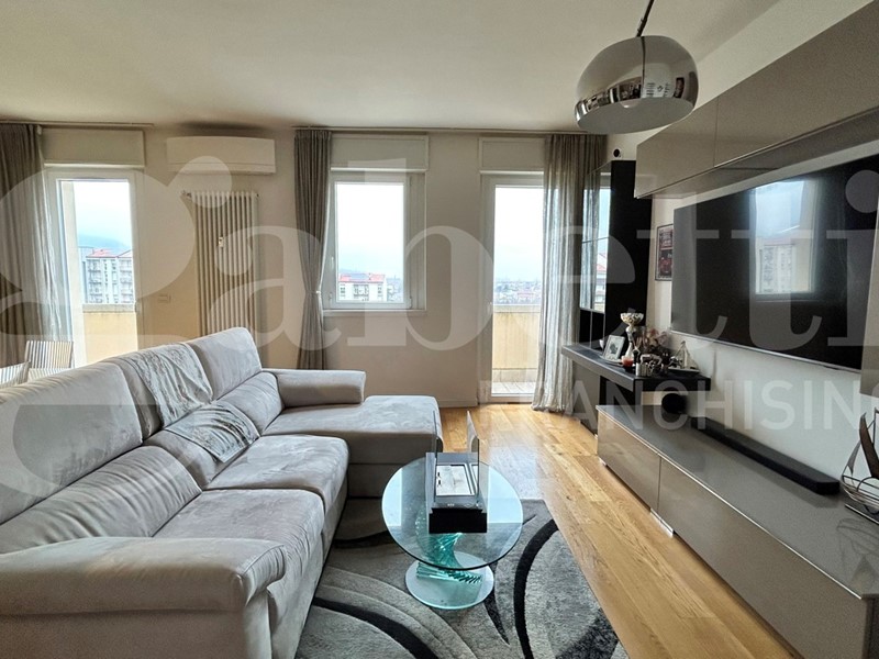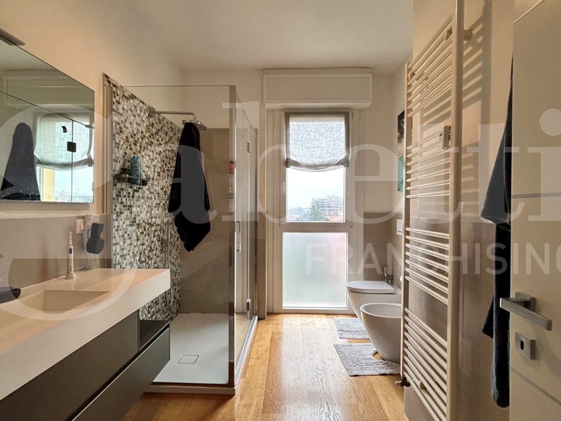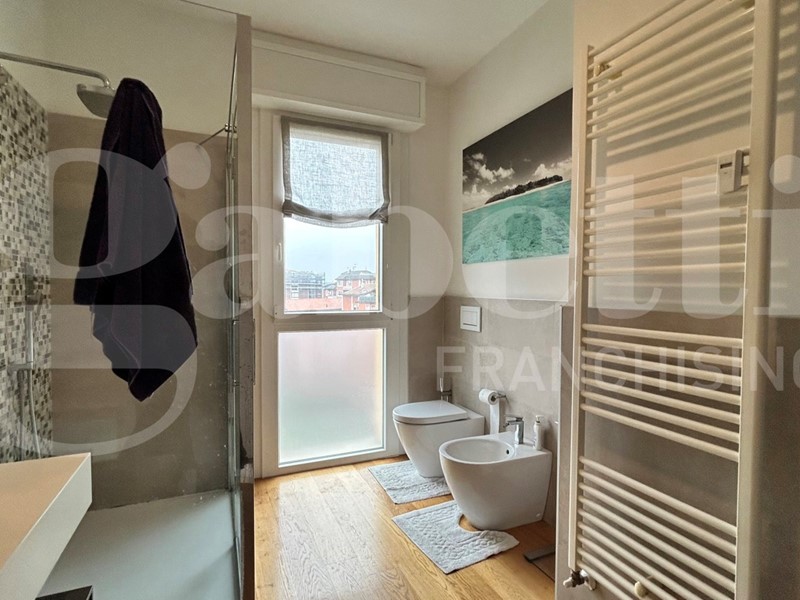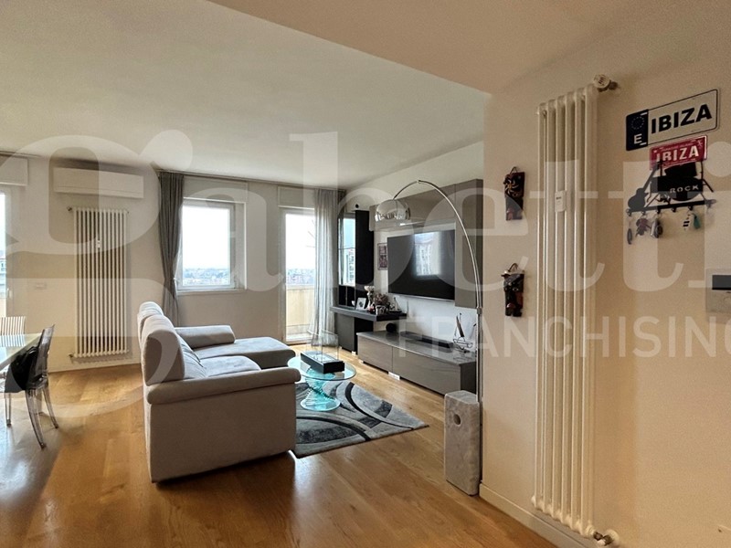 In Via Milano, Bologna, proponiamo in vendita nuda proprietà di un elegante appartamento di 110 mq in palazzo riqualificato con Bonus 110%, situato all'ottavo ed ultimo piano servito da ascensore.