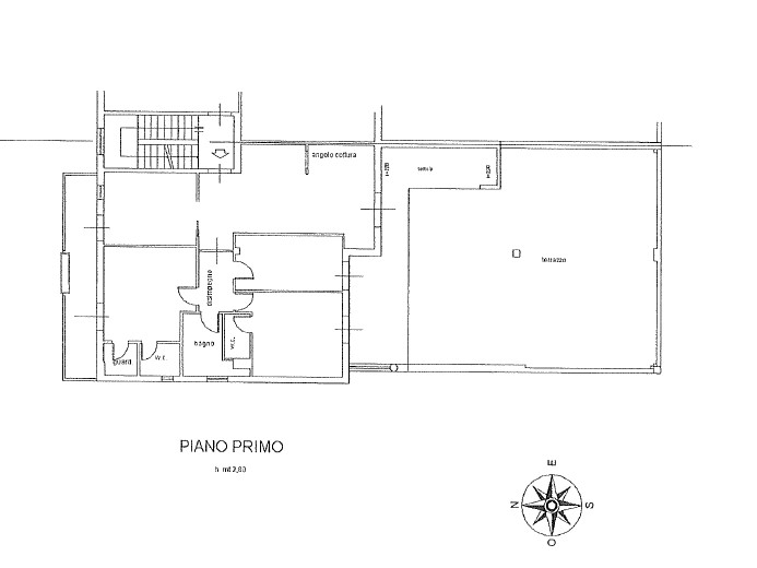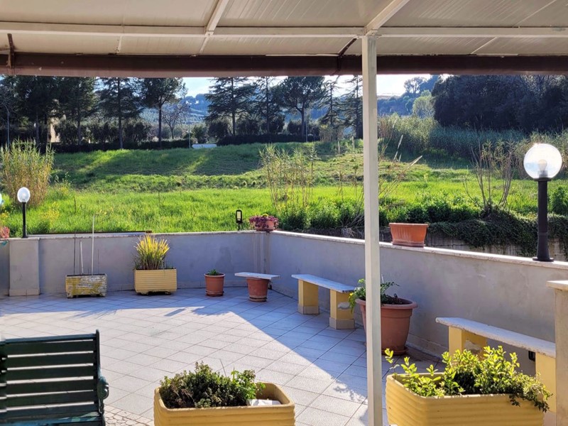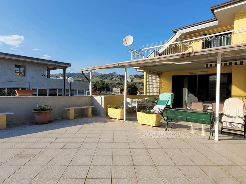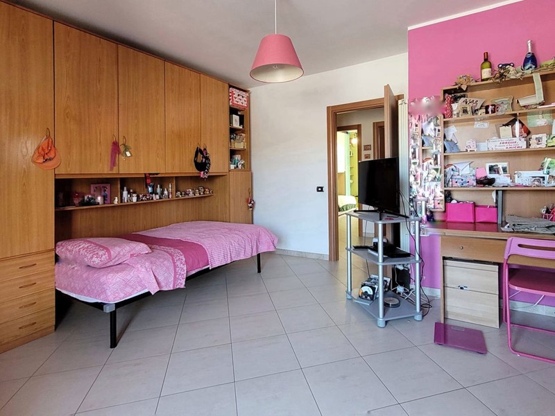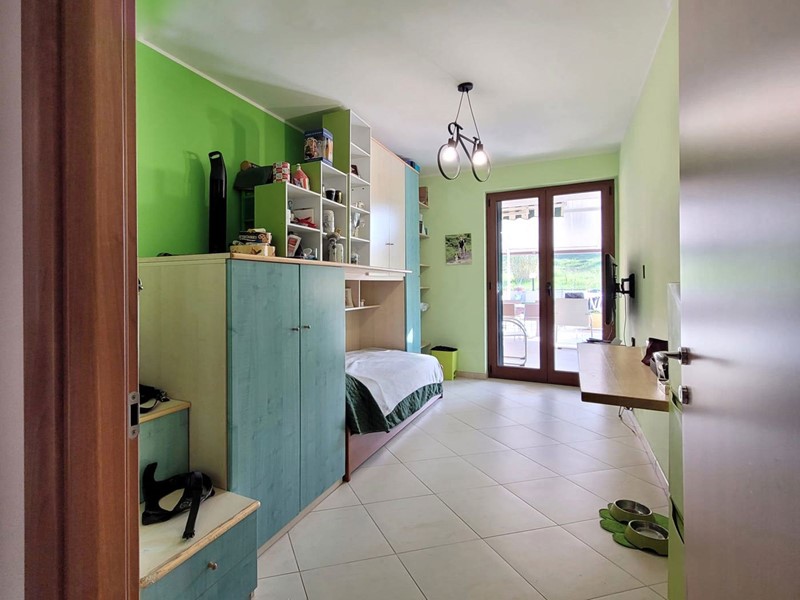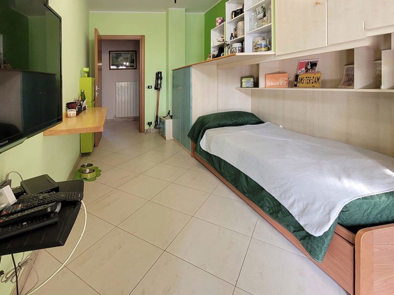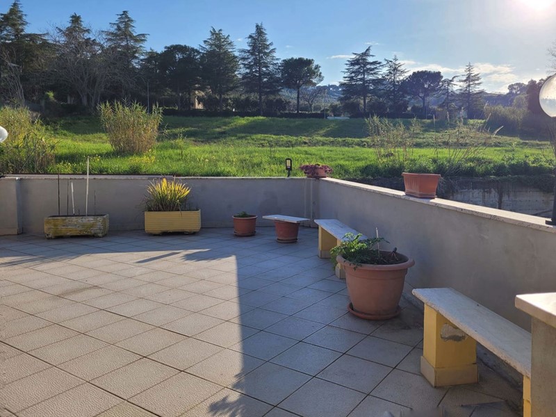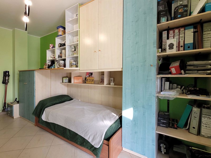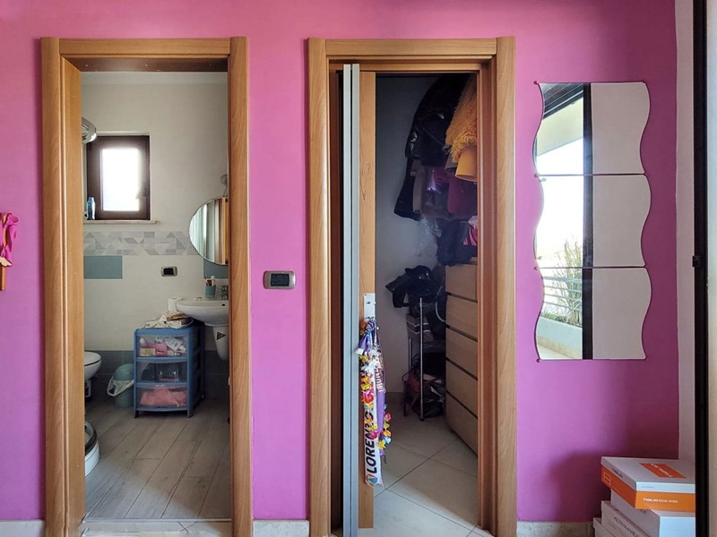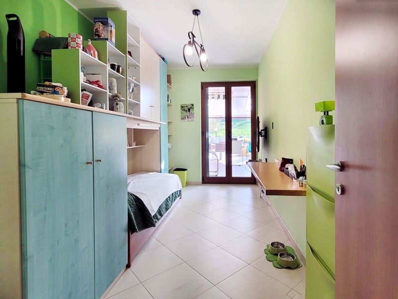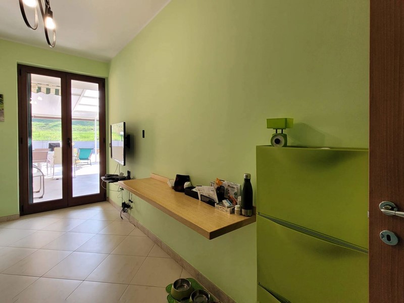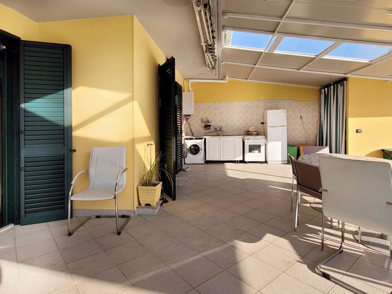L'appartamento di circa 117 mq è organizzato in un ingresso su ampio e luminoso soggiorno con angolo cottura, uno studio, disimpegno, tre camere da letto di cui una matrimoniale con bagno personale con doccia, una doppia con cabina armadio e bagno in camera e una singola, bagno principale. A servizio e completamento della zona a Sud troviamo un grande terrazzo di circa 124mq con una tettoia a copertura di circa 54 mq per consentirne una maggior godibilità. lungo il lato nord è presente un balcone di circa 12 mq.