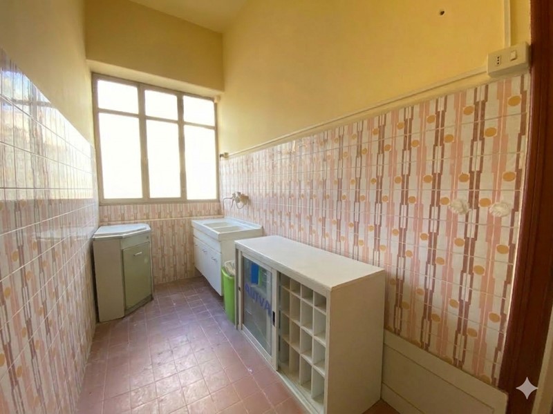 Composto interamente da: ampio ingresso, soggiorno, due camere da letto, servizio, ampio ripostiglio e due balconi. L'appartamento necessita di interventi di ristrutturazione. Doppia l'esposizione prevalentemente esterna, il che rende l'immobile molto luminoso.