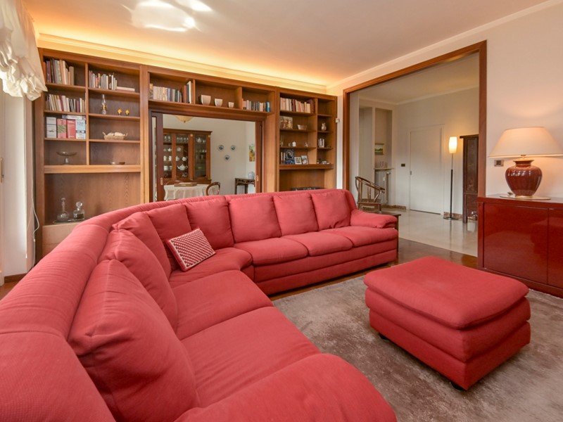 La zona giorno offre un salone confortevole che si affaccia su un terrazzo esposto a sud con vista sul verde del giardino condominiale, sala da pranzo e cucina abitabile e ben organizzata, la zona notte conta quattro camere da letto e tre bagni, completa la proprietà un box auto doppio un posto auto in cortile e una cantina.