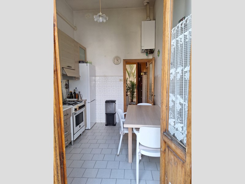 Situato in palazzina senza ascensore di sole 5 unità immobiliari, l'appartamento è molto luminoso ed è composto da ingresso, soggiorno con affaccio su strada, cucina abitabile, camera matrimoniale con affaccio su corte interna, bagno e ampio ripostiglio. La proprietà è dotata anche di un balcone di circa 7 metri con affaccio sul verde e 2 ampie cantine finestrate. L'immobile versa in medio stato di conservazione e vanta alti soffitti, inoltre è corredato di riscaldamento autonomo e impianto di condizionamento aria e zanzariere ben installate. Eventuale possibilità di sfruttamento del solaio.