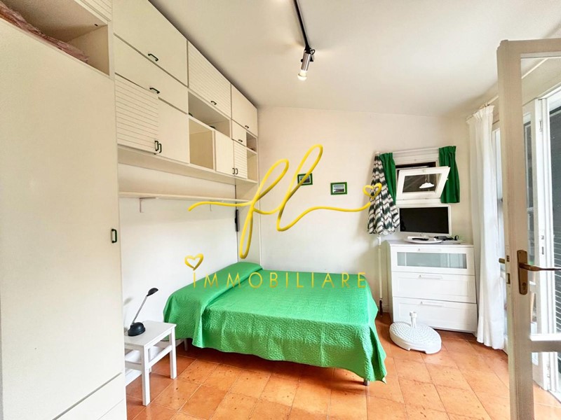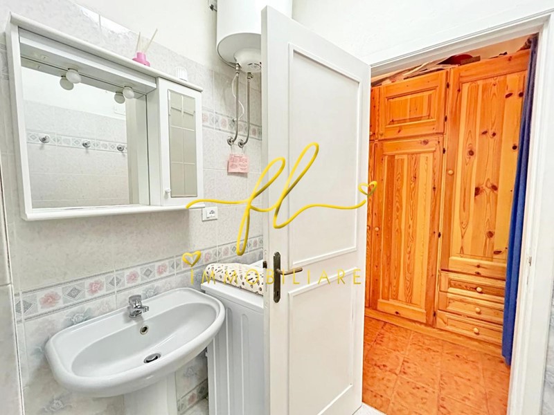 Il bilocale è attualmente suddiviso in doppia corte esterna una accessibile dal soggiorno e una dalla camera per godere di momenti conviviali all’aperto dopo una giornata al mare, soggiorno ampio con doppia finestra e angolo cottura, disimpegno ampio dove è stato collocato un comodo armadio a muro, ampio bagno, camera matrimoniale e piccolo altro vano utilizzato come altra piccola camera singola; Uscendo dalla porta finestra della camera troviamo una scala a chiocciola che conduce alla terrazza sul tetto.