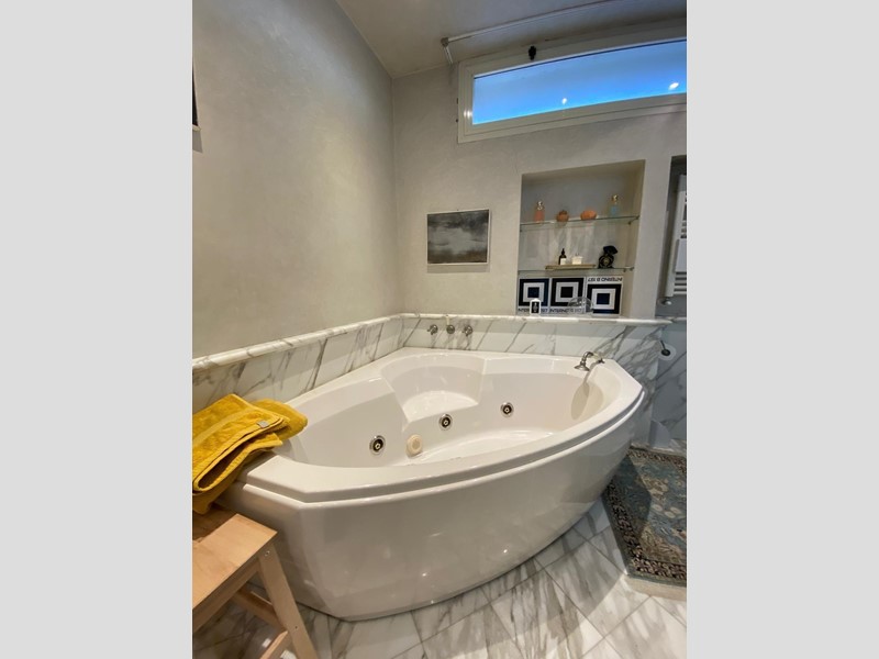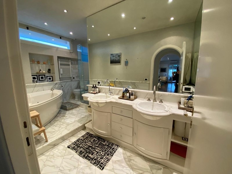 L'interno luminosissimo si compone inoltre di due camere da letto matrimoniali di cui una con bagno. Il bagno padronale, tutto realizzato in marmo di Carrara, è dotato di doccia e vasca idromassaggio.