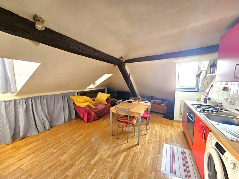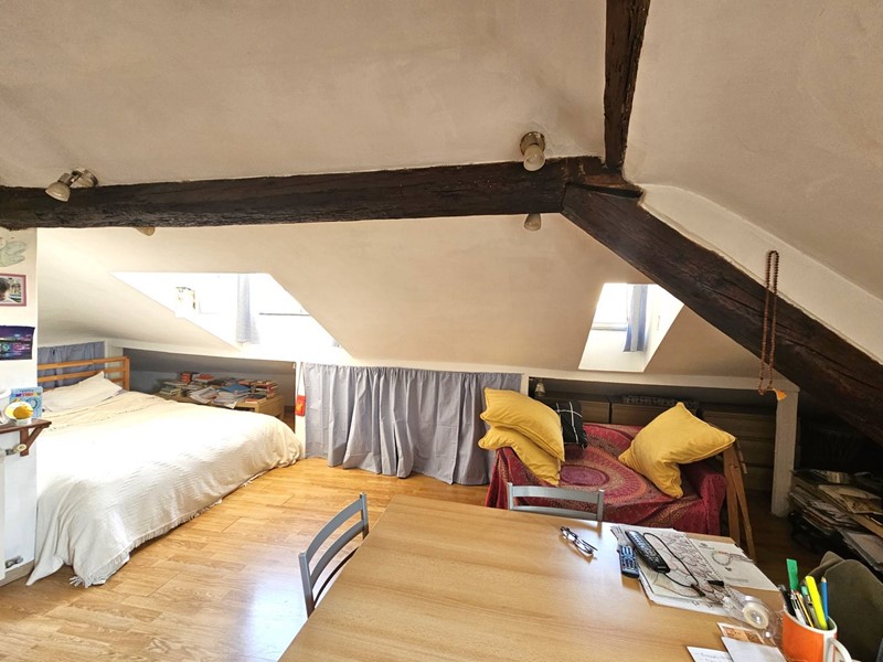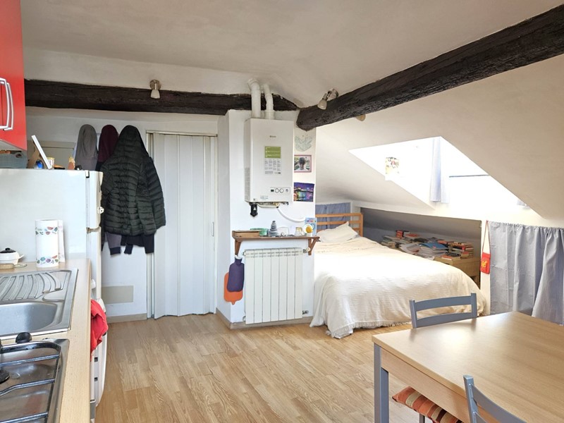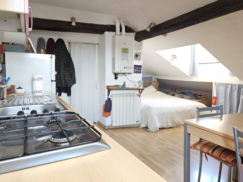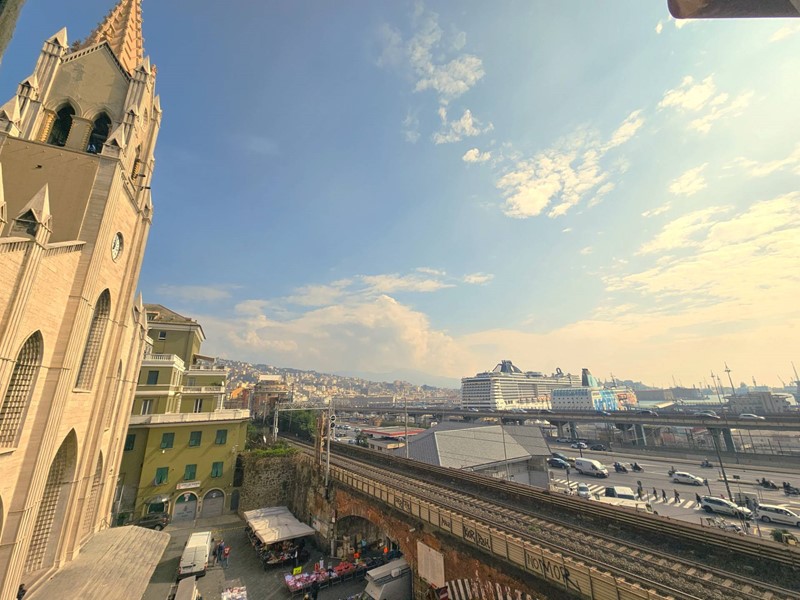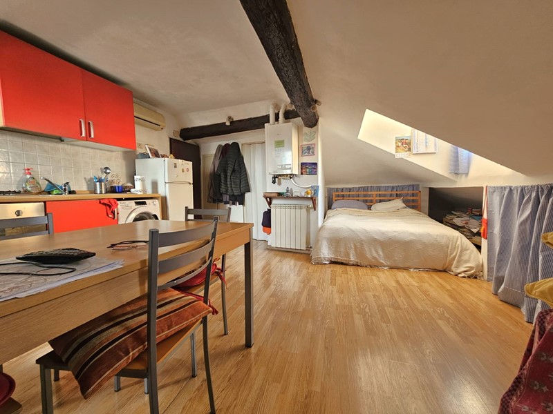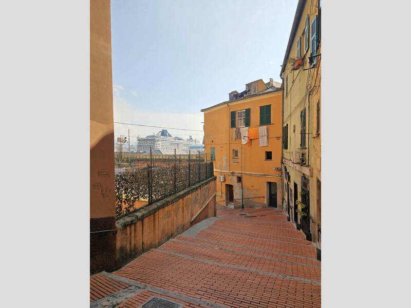 GENOVA DI NEGRO mansarda con vista cittaantica-porto in vendita con scorcio mare nella parti iniziale di Salita degli Angeli in palazzo antico ordinato. La salita è una antica creuza pedonale con pavimentazione in mattoni rossi recentemente riportata al suo antico splendore. Interno ordinato e formato da un unico ambiente dove convivono zona giorno e zona notte più bagno con finestra e pronto da abitare, adatto anche come investimento tipo bed and breakfast perche e adiacente traghetti-lanterna adiacente stazione, metro, citta storica. Riscaldamento autonomo, bassissime spese di gestione. Pur essendo una mansarda ha una buona luminosità avendo diversi abbaini con vista porto citta vecchia e vista creuza, Particolarmente comodo perche il primissimo tratto della salita Angeli e adiacente a negozi e mercato coperto e supermercati. Possibilita di acquisto anche senza anticipo con rata mutuo 230,00 mensili.