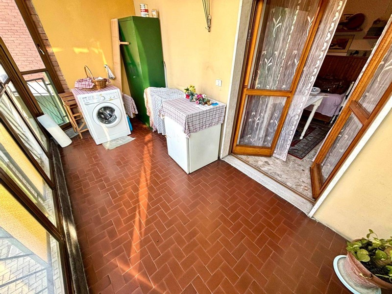 Ingresso su ampio corridoio con armadiatura a muro, cucina abitabile, soggiorno con uscita diretta su terrazzino godibile, 3 camere da letto matrimoniali, bagno finestrato con box doccia, ripostiglio e ulteriore terrazzino momentaneamente verandato.