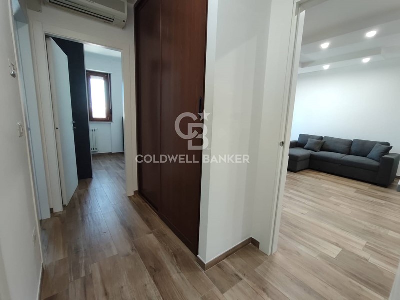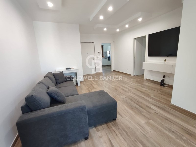 Gli spazi interni sono ben distribuiti e funzionali: lingresso si apre su un luminoso soggiorno con balcone, la cucina abitabile dispone di un secondo balcone adibito a zona lavanderia, seguono tre camere da letto e un bagno.