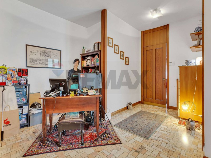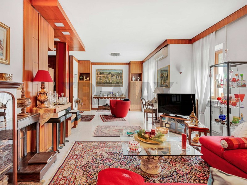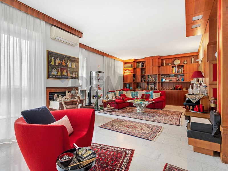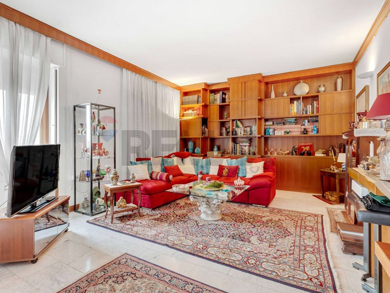 Il soggiorno è doppio, ed servito da balcone; la cucina è abitabile e ben distribuita, la zona notte si accede attraverso un grande disimpegno attualmente adibito a studio, ed è poi suddivisa in tre camere da letto, e un bagno che è stato negli anni ristrutturato e diviso in due servizi. Due delle tre camere hanno anch'esse il balcone.