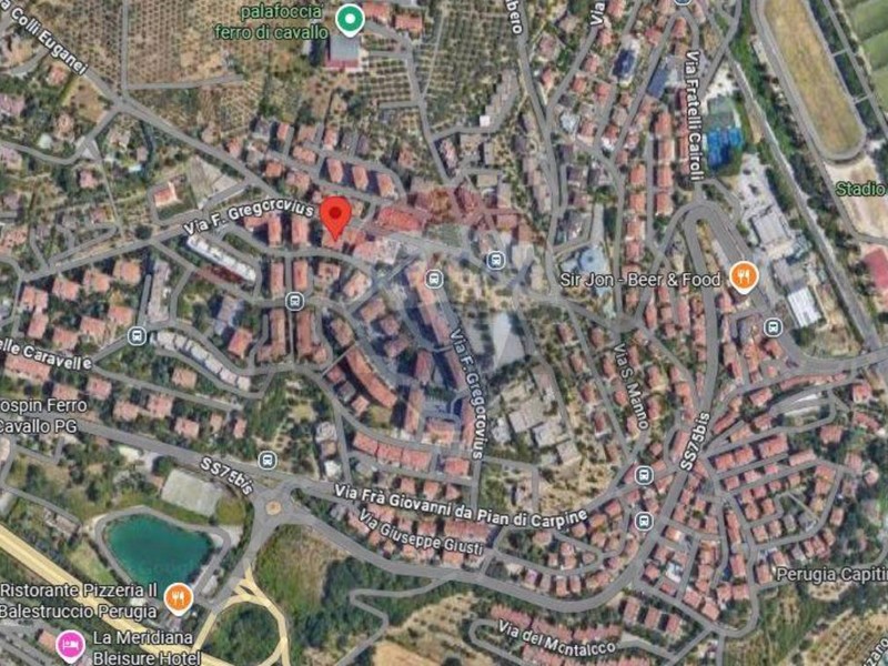 Diritti di piena proprietà su un appartamento ubicato al piano seminterrato di un condominio di civile abitazione, composto da ingresso, cucina, soggiorno, tre camere, un bagno, un wc e disimpegno, un garage al piano interrato, oltre i proporzionali diritti di comproprietà sulle parti comuni interne ed esterne del fabbricato e su quanto altro comune ai sensi di legge, il tutto ubicato in Comune di Perugia via F. Gregorovius n. 58.