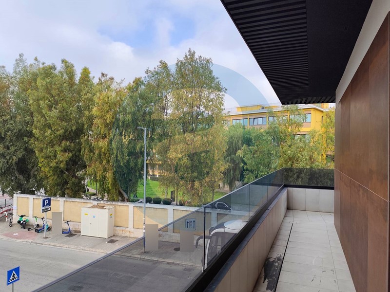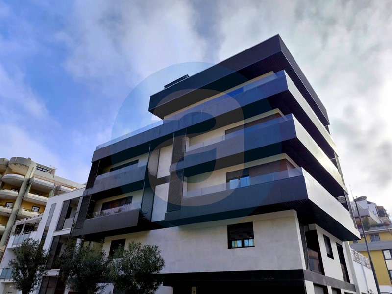 ESTERNO: Appartamento al secondo piano in un edificio di quattro piani, dotato di ascensore. Balcone angolare di 16 mq.