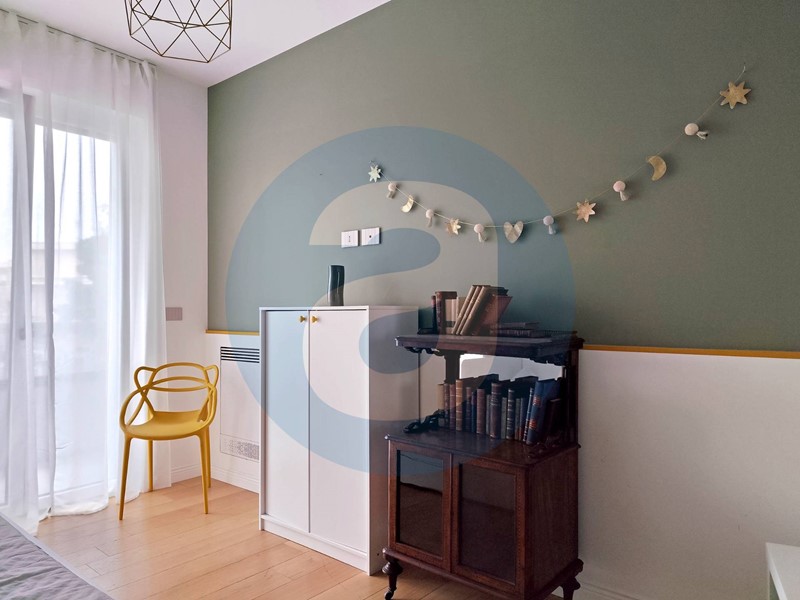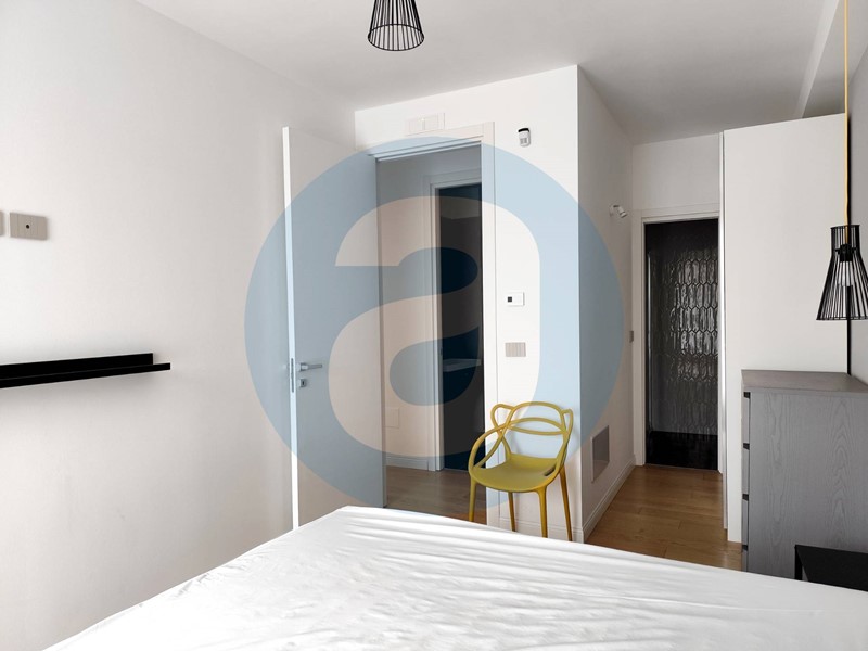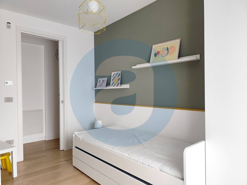 FINITURE: Pavimentazione in parquet. Infissi in pvc con triplo vetro. Avvolgibili in alluminio con apertura elettrica. Porta di ingresso blindata a filo muro e con chiave digitale, porte interne con altezza 2,5 metri e cerniere a scomparsa. Placche Bticino serie living now, satinato color tortora. Impianto di allarme. Videocitofono. Riscaldamento a pavimento. Raffrescamento con fancoil incassati nella muratura. Immobile gas free. APE A.