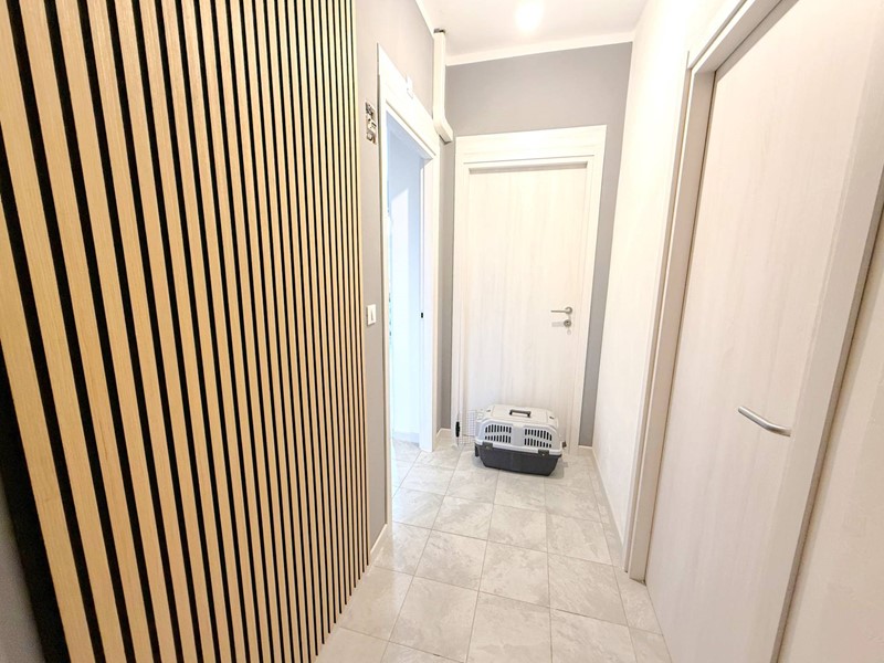 Entrando nell'appartamento, si accede subito alla zona giorno composta da un ampio soggiorno con cucina a vista, ideale per trascorrere piacevoli momenti in compagnia di familiari e amici. La cucina è completamente arredata e dotata di tutti gli elettrodomestici necessari.