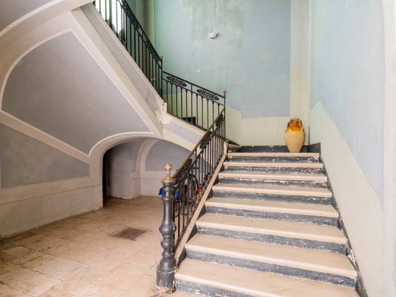Il piano terra accoglie lingresso della dimora con circa 123 mq di superficie coperta e 45 mq di area scoperta. Laccesso avviene attraverso un ampio atrio interno utilizzabile anche come parcheggio privato, elemento di grande valore nel centro storico, che introduce a un importante androne coperto dal quale si sviluppa la scenografica scalinata in pietra, ampia e raffinata, tipica dei palazzi nobiliari.