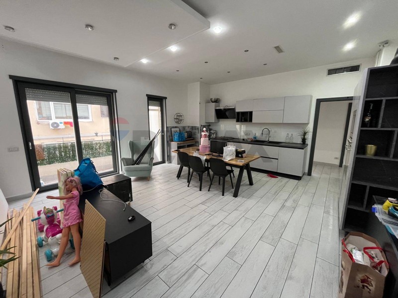 L'immobile, di circa 90 mq, è composto da: ingresso in zona giorno, salone con angolo cottura e balcone, disimpegno che porta alla zona notte, con 3 camere da letto di cui una con cabina armadio, e bagno con lavanderia.