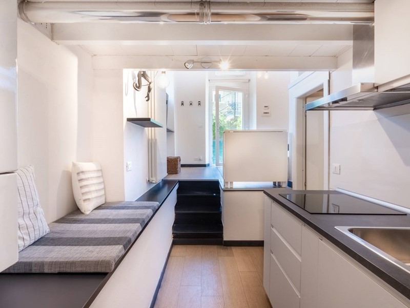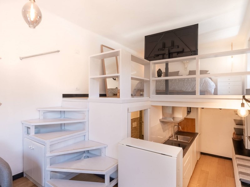 Limmobile si apre su un grazioso salottino che accoglie gli ospiti in un ambiente luminoso e ben curato. Scendendo al livello inferiore si accede allangolo cottura, funzionale e ben organizzato, e al bagno, anchesso ristrutturato, dotato di ampia doccia con soffione emozionale e finiture moderne. La zona notte è situata su un comodo soppalco, che permette di sfruttare al meglio gli spazi garantendo privacy e comfort.