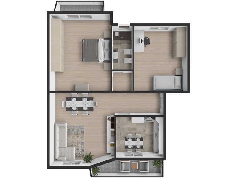 L'appartamento si presenta in ottime condizioni interne. L'ingresso conduce al luminoso soggiorno con accesso al balcone esposto a sud e alla cucina abitabile, anch'essa dotata di balcone.