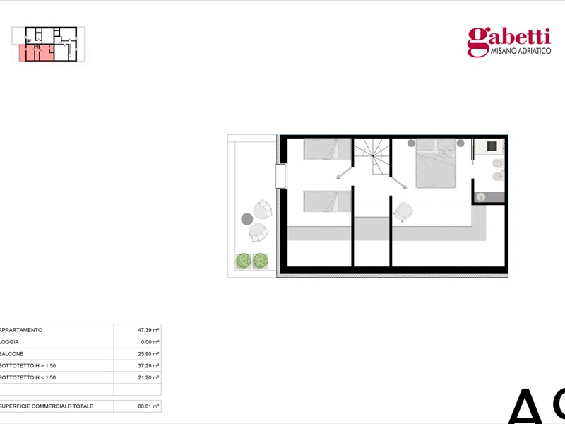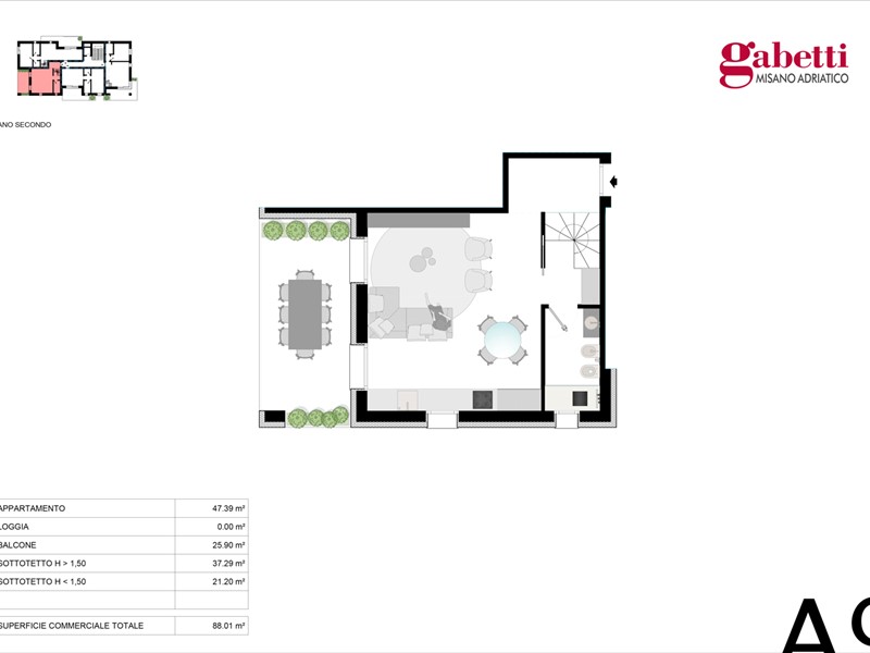 Situato al secondo piano, l'Appartamento A9 è disposto su due livelli per offrire un'esperienza abitativa unica e personalizzabile. Al primo livello, la vita quotidiana si svolge in ambienti luminosi e definiti; salendo, si scopre un regno di possibilità che sfocia in un terrazzo privato dove l'orizzonte diventa parte integrante dell'arredamento.