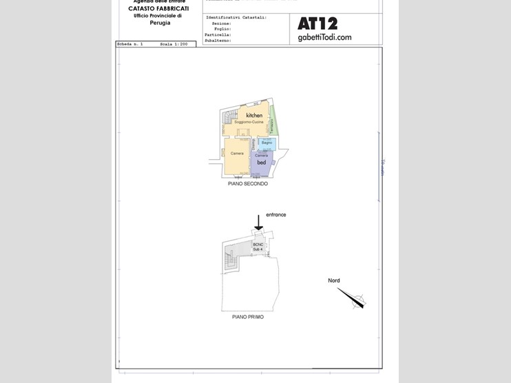 Si accede all'immobile mediante una scala interna che, dall'ingresso al piano terra, conduce al primo piano. Qui troviamo un luminoso soggiorno con termo-camino, angolo cottura e piccolo terrazzo soleggiato, ideale per momenti di relax.