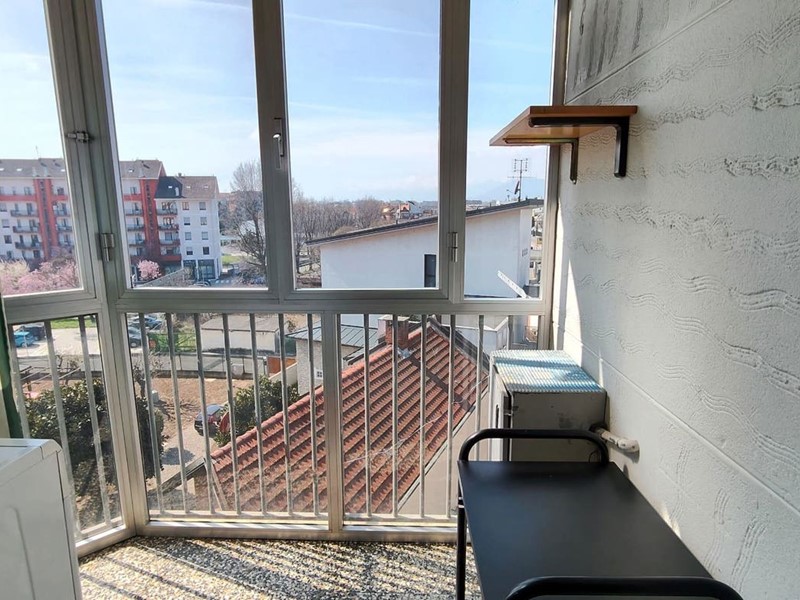 L'appartamento si presenta abitabile sin da subito ed è così composto: dal portoncino di ingresso si accede al disimpegno che separa tutti gli ambienti, a sinistra vi è la zona giorno con tinello con cucinino ed uscita sul primo balcone verandato dotato di attacchi per la lavatrice; a destra vi è la camera da letto matrimoniale, con uscita sul secondo balcone.