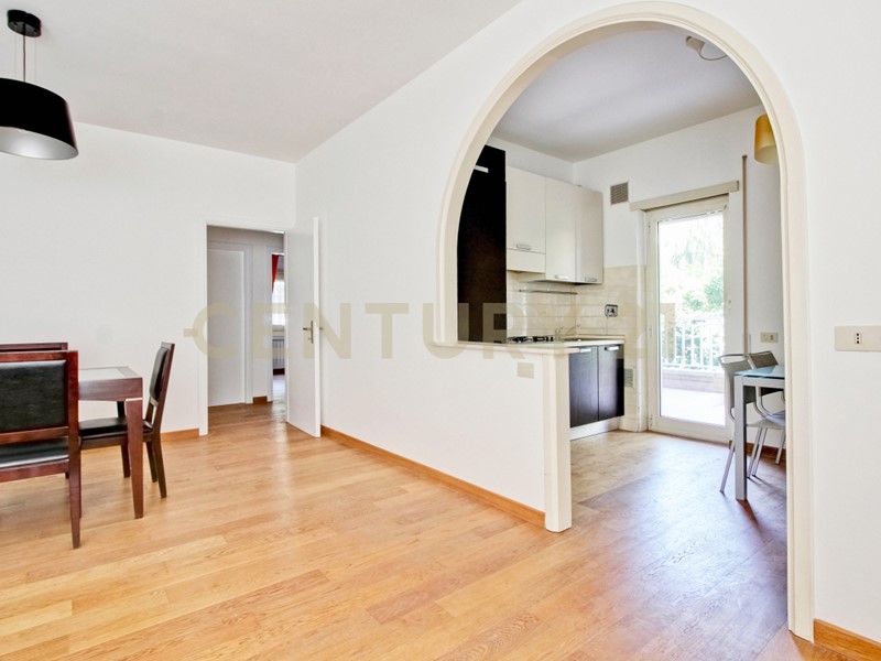 La proprietà viene locata parzialmente arredata (cucina completa, tavolo, armadiature presenti). Completa la soluzione un posto auto coperto, elemento di grande valore nella zona e raro da trovare.