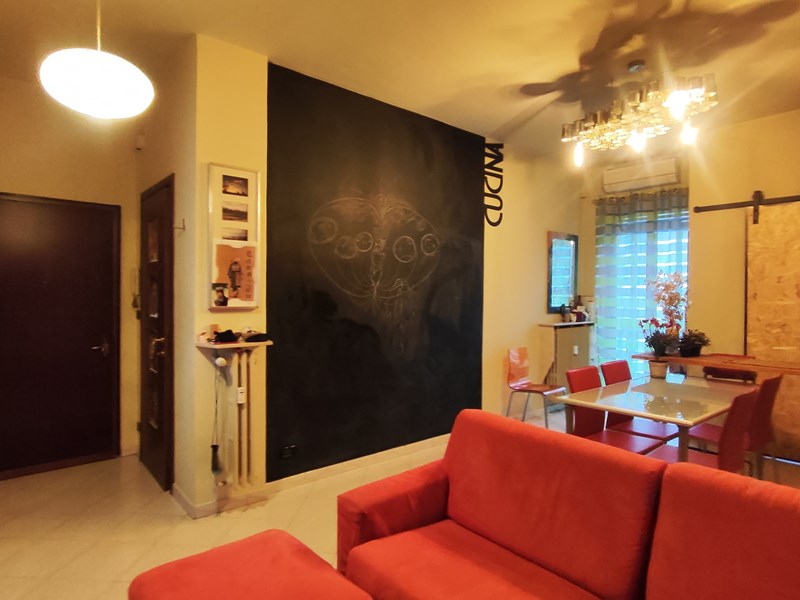 L'alloggio è situato in un condominio degli anni '50, realizzato a suo tempo con un certo decoro architettonico visibile nei parapetti sagomati dei balconi, negli inserti di finitura dei balconi a mosaico, nel coordinamento cromatico tra infissi /serrande e particolari di facciata. Nelle vicinanze: il supermercato IN's, un parco-giochi, tabaccheria e bar/servizi vari.