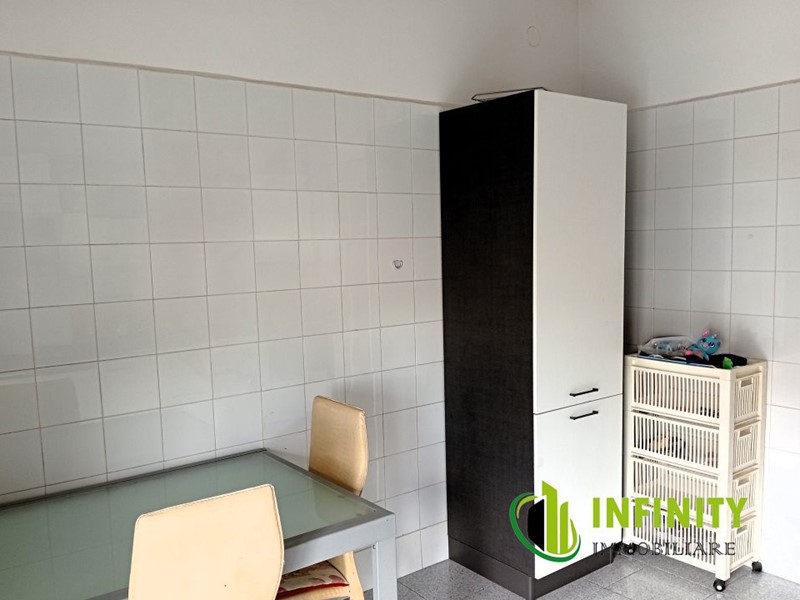 Appartamento di circa 85 mq, situato al primo piano rialzato, in zona centrale, comoda ai principali servizi e collegamenti. L'immobile è caratterizzato da ambienti luminosi e ben distribuiti e si compone di una cucina abitabile, un ampio soggiorno ideale per momenti di relax, una camera da letto matrimoniale padronale e una seconda camera da letto, adatta a diverse esigenze.\n\nLa proprietà dispone inoltre di due terrazzi, uno sul fronte e uno sul retro, che offrono ulteriori spazi esterni fruibili. Grazie alla doppia esposizione, l'appartamento gode di un'ottima luminosità naturale, rendendo gli ambienti ancora più accoglienti e confortevoli. Completa la soluzione un comodo ripostiglio situato nel seminterrato del condominio, utile per ottimizzare lo spazio abitativo.\n - Maggiori Dettagli: Porta blindata, Cucina Abitabile