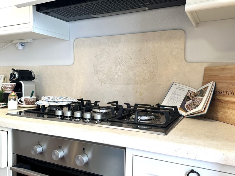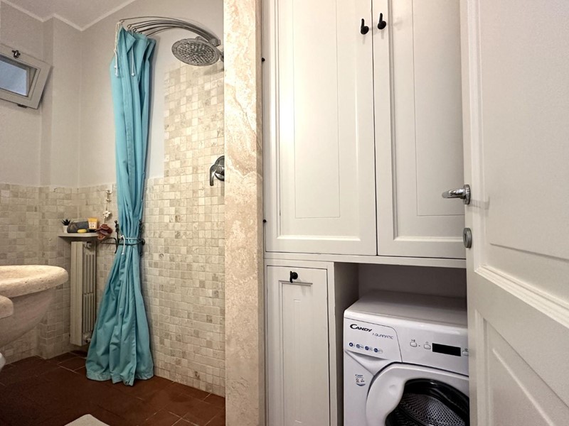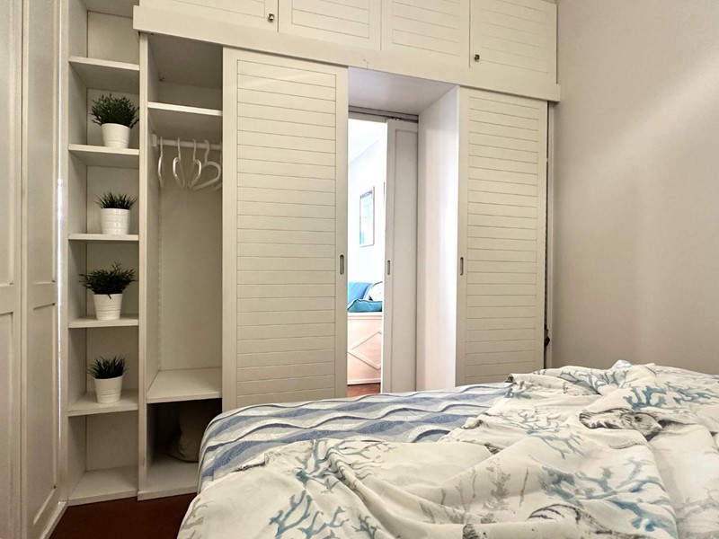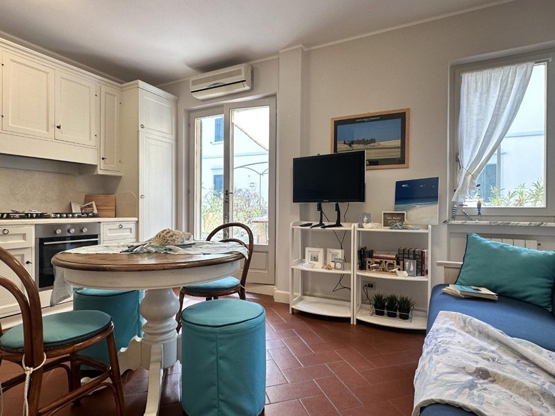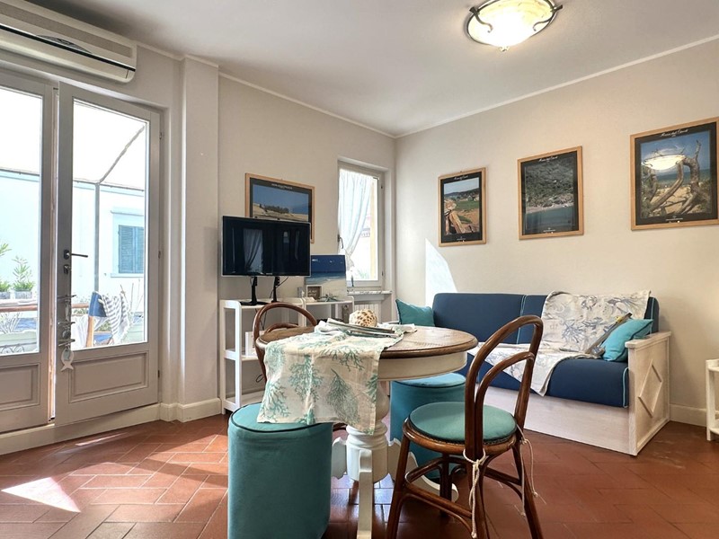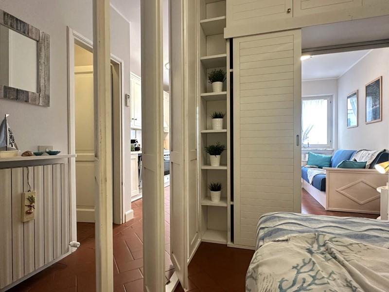L'appartamento si distingue per arredi molto curati in stile marino, con tonalità bianco-azzurre che richiamano l'atmosfera costiera, e caldi pavimenti in cotto. Grazie all'ottima esposizione a sud, l'immobile è estremamente luminoso durante tutto il giorno.