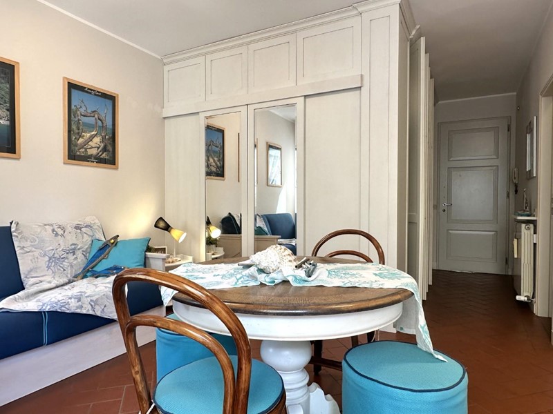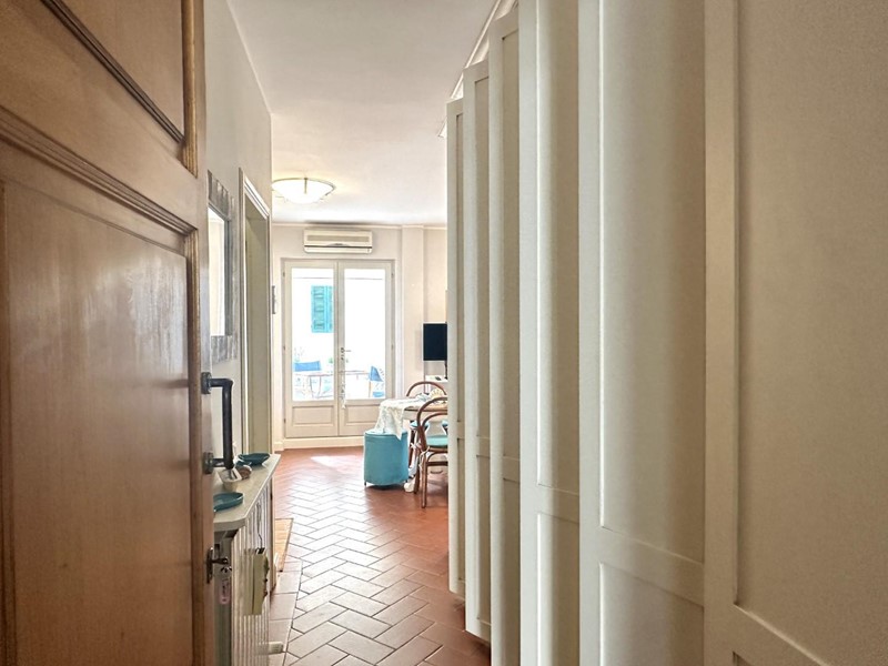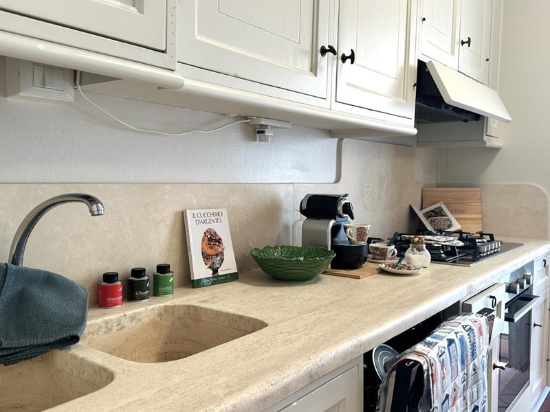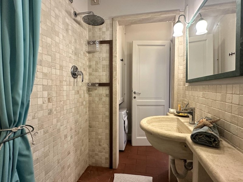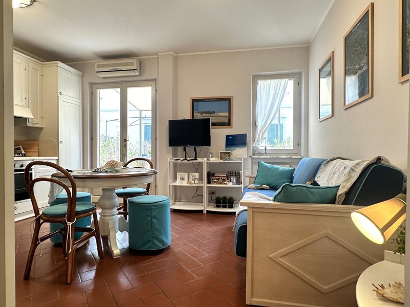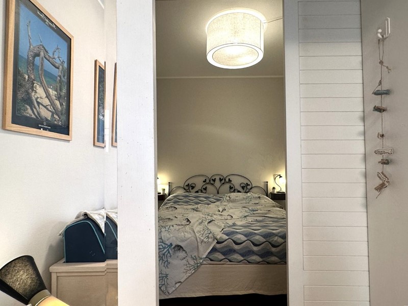 L'appartamento si distingue per arredi molto curati in stile marino, con tonalità bianco-azzurre che richiamano l'atmosfera costiera, e caldi pavimenti in cotto. Grazie all'ottima esposizione a sud, l'immobile è estremamente luminoso durante tutto il giorno.