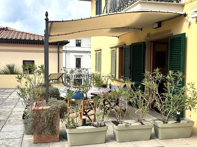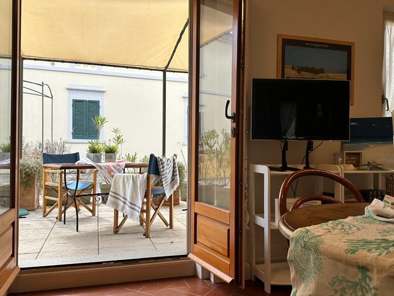 Vero fiore all'occhiello della proprietà è la favolosa terrazza abitabile. Attrezzata con una vela ombreggiante, tavolo da pranzo e lettino prendisole, rappresenta un vero e proprio prolungamento della casa all'aperto, ideale per godersi il clima mite di San Vincenzo in totale relax tra piante mediterranee e scorci del centro cittadino.