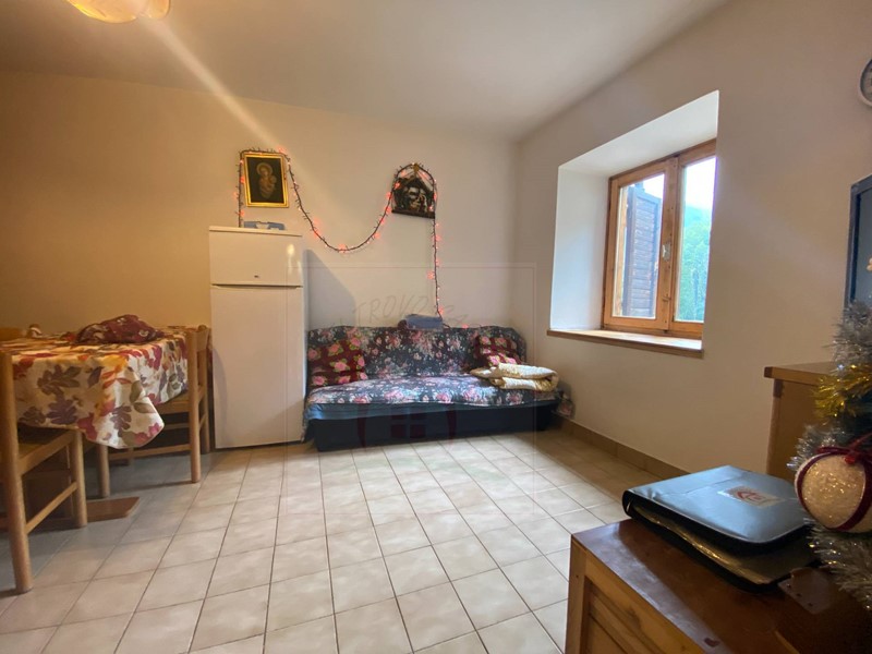 L'immobile è collocato al piano primo in un contesto di sole tre unità, così composto: ingresso, soggiorno con angolo cottura, ripostiglio, bagno, due stanze.