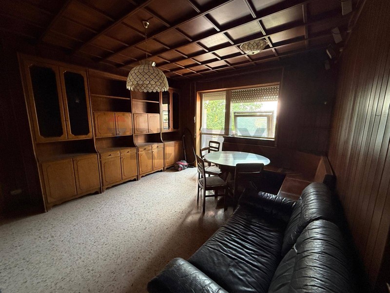 Lo stato di conservazione dell'appartamento è da ristrutturare e gli infissi e le finestre sono in legno.