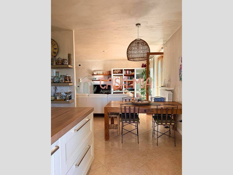La zona giorno è composta da un ampio soggiorno luminoso con zona cucina a vista divisibile, entrambe servite da un primo balcone dal quale si accede alla zona giardino piantumata con irrigazione, ed in parte piastrellata con beole per vivere lo spazio esterno in pieno comfort e relax, oltre a secondo terrazzo coperto.