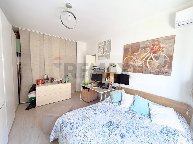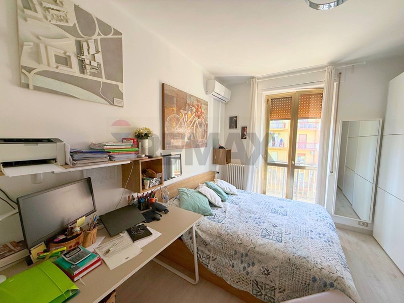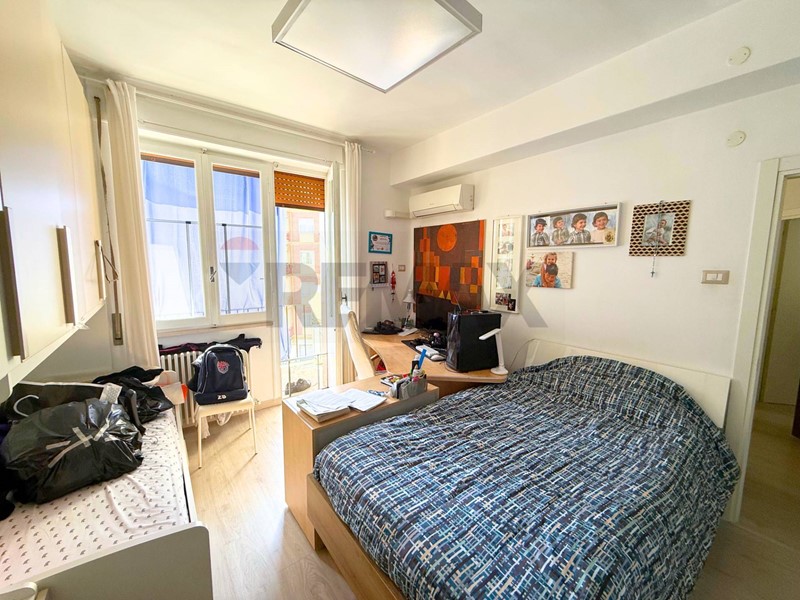 Ai lati della zona giorno si sviluppano due camere molto spaziose, entrambe dotate di balcone, oltre al bagno finestrato.