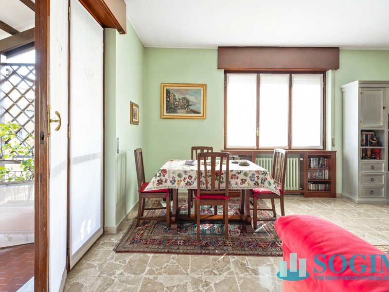 Posto al primo piano di una curata palazzina degli anni '70, l'appartamento colpisce per la sua tripla esposizione (Sud-Est-Ovest) che garantisce sole per tutto l'arco della giornata.