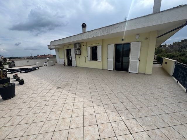 L'appartamento è composto da un ingresso su ampio soggiorno con cucina a vista, una camera matrimoniale, una camera singola, un bagno con vasca, un bagno con doccia oltre ad un ampio terrazzo di circa 140 mq con esposizione panoramica ed una bella visuale del circondario.